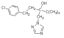 Common Name: Tebuconazole (BSI, draft E-ISO) Structure Formula: ![]() CAS Name: α-[2-(4-chlorophenyl)ethyl]-α-(1,1-dimethylethyl)-1H-1,2,4-triazole-1-ethanol Mode of Action: Systemic fungicide with protective, curative, and eradicant action. Rapidly absorbed into the vegetative parts of the plant, with translocation principally acropetally.